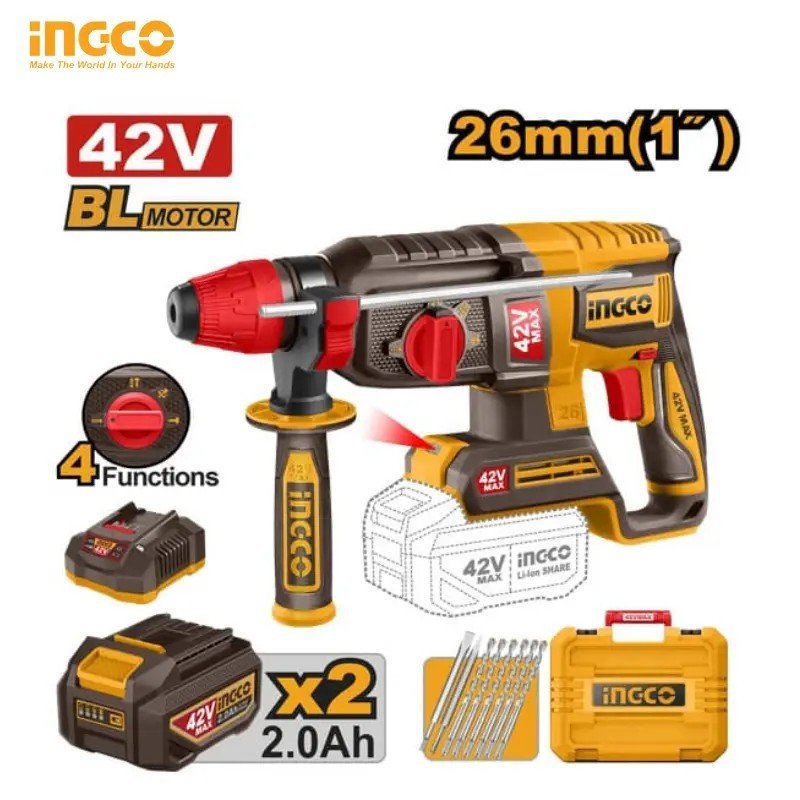 BRUSHLESS HAMMER DRILL 42V INGCO CRHLI422682BRUSHLESS HAMMER DRILL 42V INGCO CRHLI422682