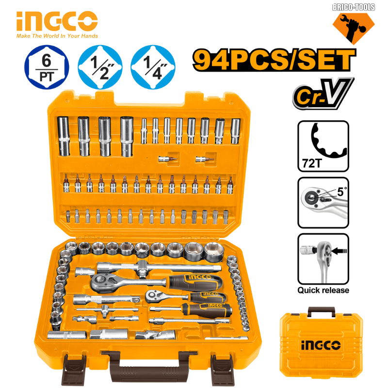 Bricolage, INGCO, Pack OutillageJEU DE 94PCS 1/4 ET 1/2 INGCO HKTS42941