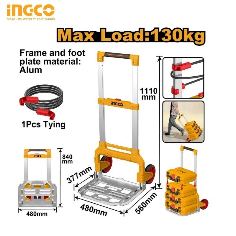 Capacité de charge : 130 kg. Matériau du cadre : aluminium.